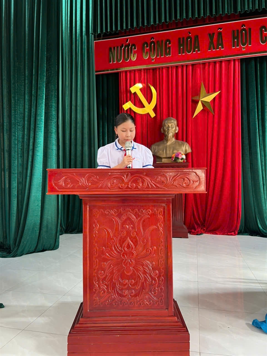 Phát biểu tại Đại hội, Đồng chí Cao Thị Hồng Mình – PHT – Phó Bí thư chi bộ nhà trường đã biểu dương những thành tích mà Liên đội đã đạt được trong năm học vừa qua và gửi gắm niềm tin, kỳ vọng vào Ban Chỉ huy Liên đội mới. Thầy/cô cũng nhấn mạnh tầm quan trọng của công tác Đội trong việc giáo dục và rèn luyện đội viên, góp phần hình thành những công dân tốt cho xã hội.